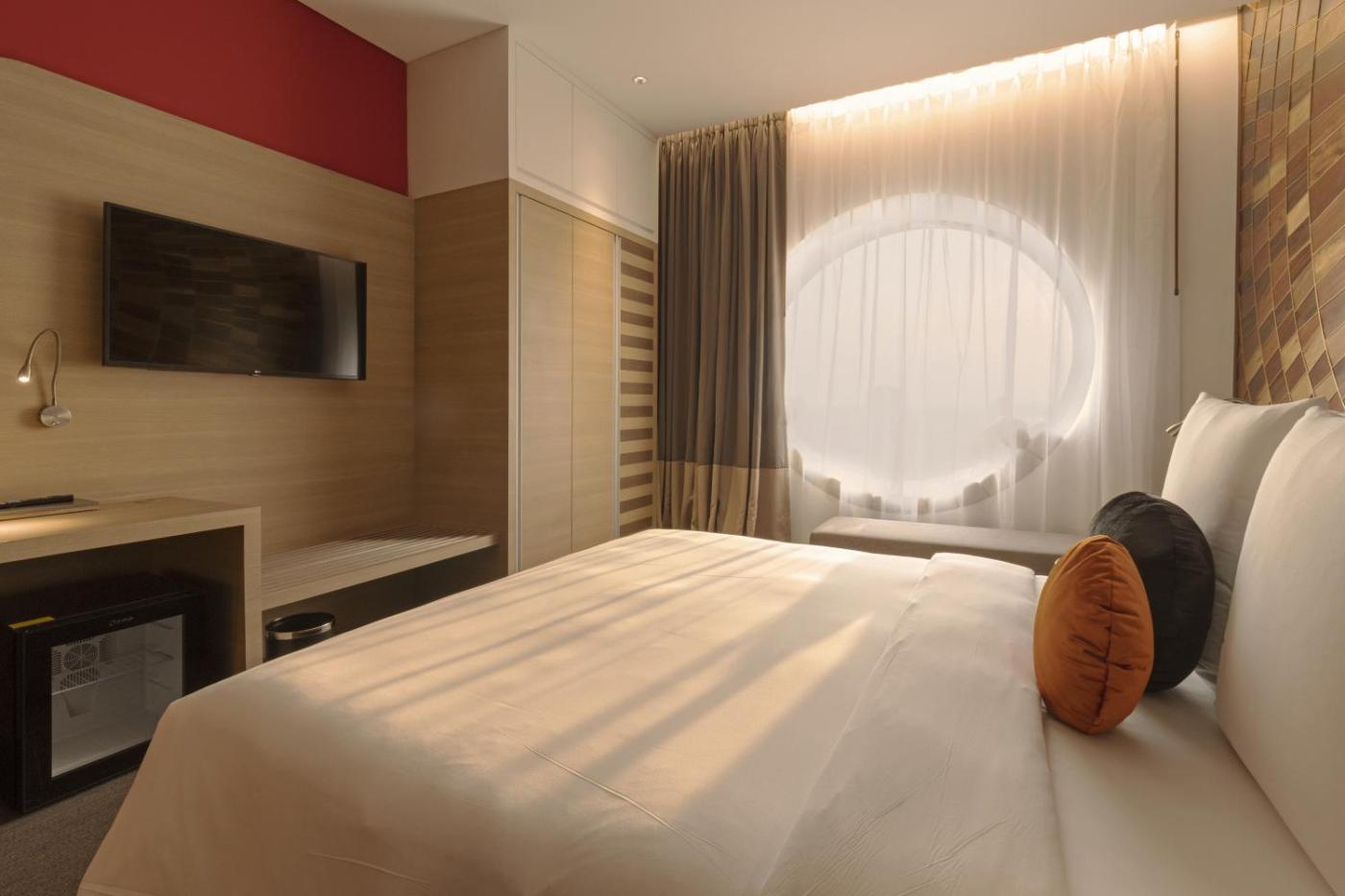 Deluxe King Bed. Guests will have a special experience as this double room provides a pool with a view. Offering free toiletries and bathrobes, this double room includes a private bathroom with a walk-in shower, a bidet and a hairdryer. The spacious air-conditioned double room offers a flat-screen TV with cable channels, soundproof walls, a tea and coffee maker, a seating area as well as city views. The unit has 1 bed. ;